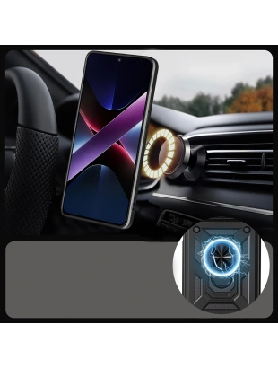 Galaxy S26 Ultra Kılıf M-safe Şarj Özellikli Karbon Fiber Görünümlü Zore Standlı Troy Kapak