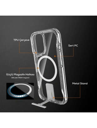 Apple iPhone 16 Pro Kılıf M-safe Şarj Özellikli Zore T-Max Standlı Kapak