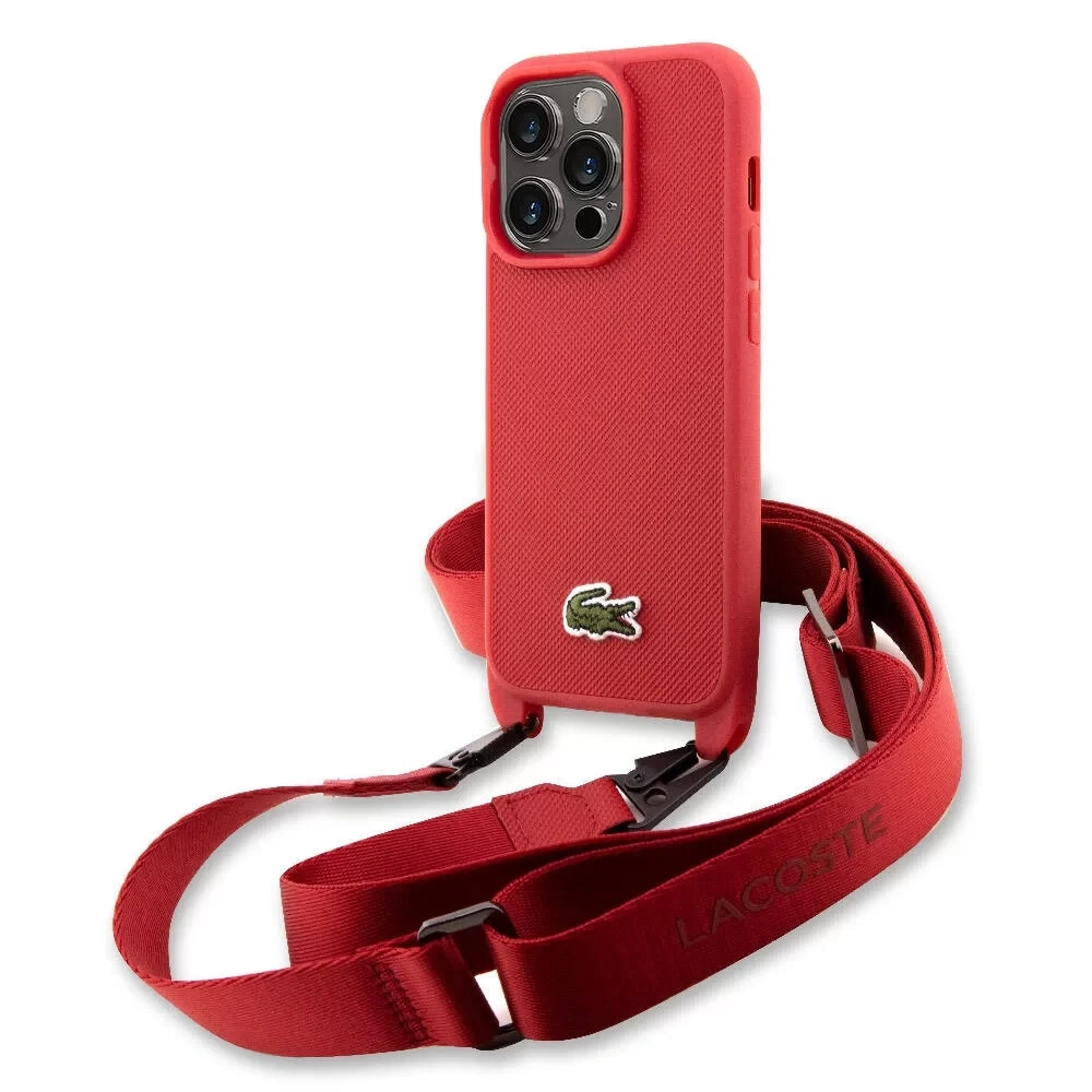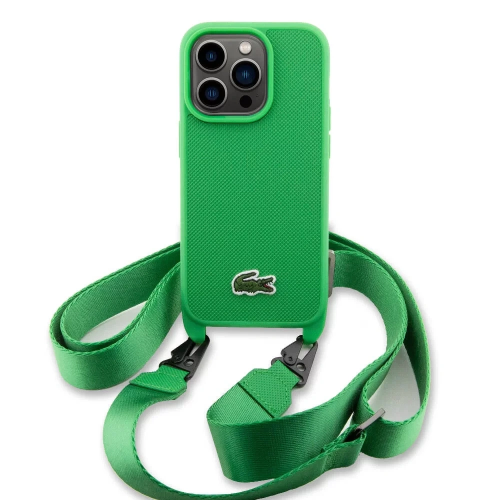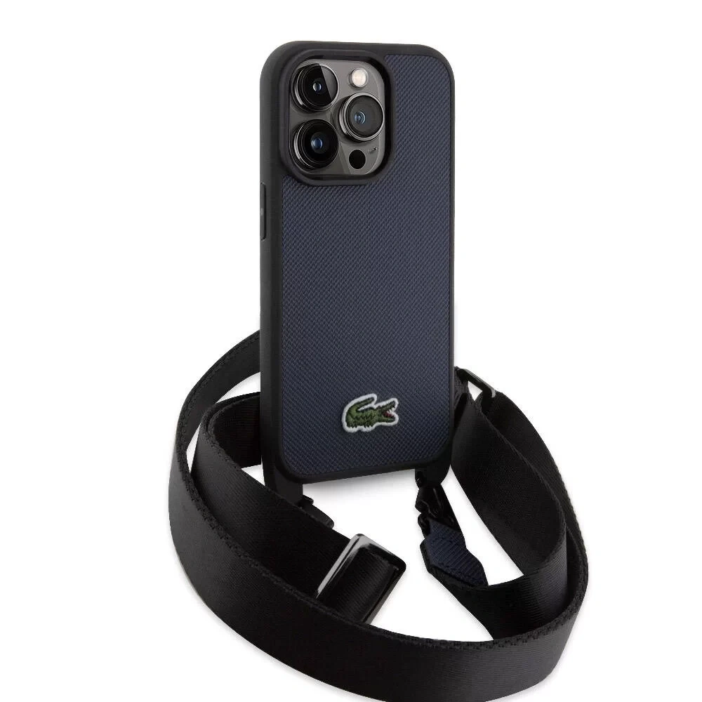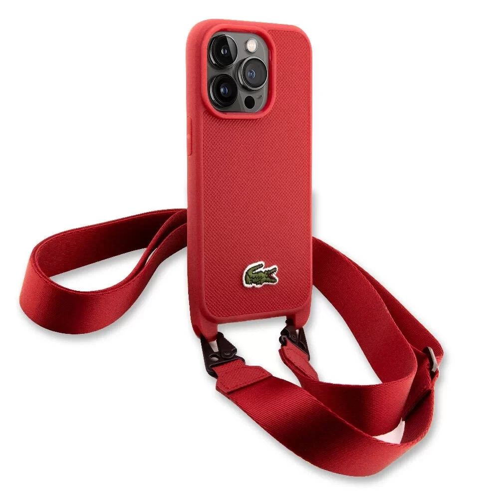 APPLE İPHONE 14 PRO KILIF LACOSTE ORJİNAL LİSANSLI PU PİKE DESENLİ ARKA YÜZEY ASKILI İKONİK TİMSAH DOKUMA LOGOLU KAPAK