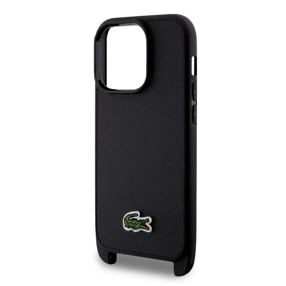 APPLE İPHONE 15 PRO KILIF LACOSTE ORJİNAL LİSANSLI PU PİKE DESENLİ ARKA YÜZEY ASKILI İKONİK TİMSAH DOKUMA LOGOLU KAPAK