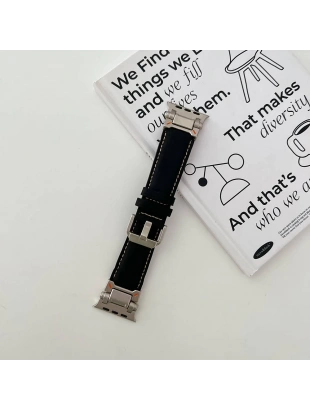 Apple Watch 44mm Zore KRD-114 Metal Başlıklı Suni Deri Kordon