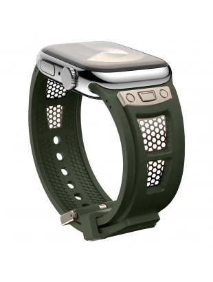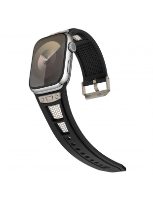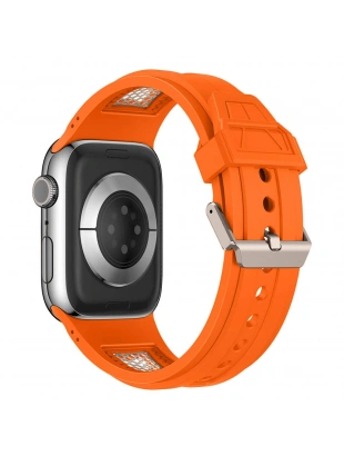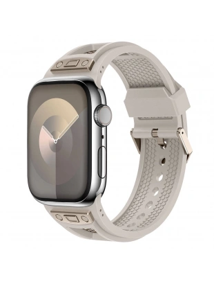 Apple Watch 44mm Zore KRD-117 Hava Alabilen Delikli Metal Süslemeli Desenli Silikon Kordon
