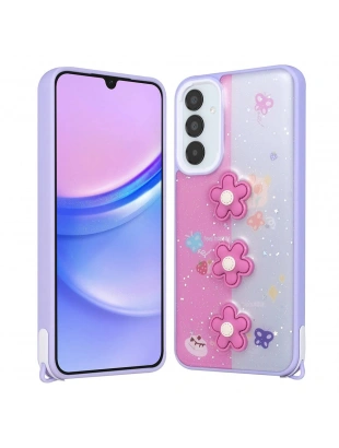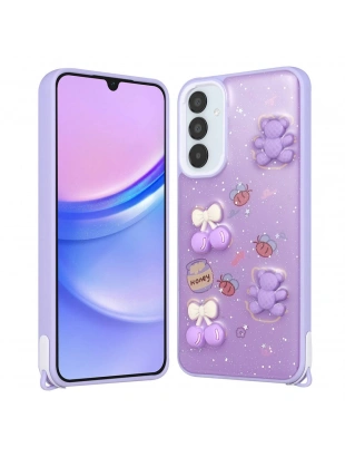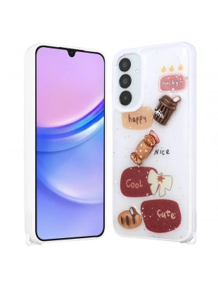 Galaxy A15 Kılıf Parlayan Simli Kabartma Figürlü Zore Cevze Kapak