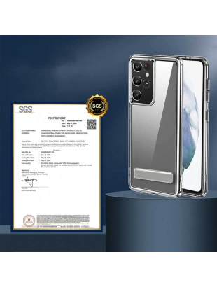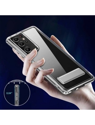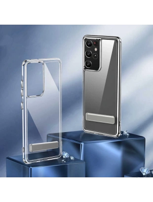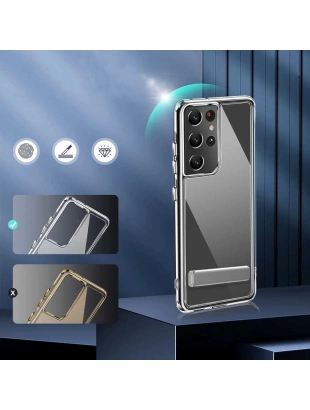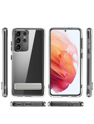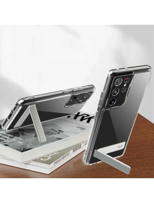 Galaxy S21 Ultra Kılıf Standlı Şeffaf Silikon Zore L-Stand Kapak