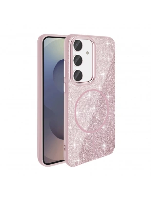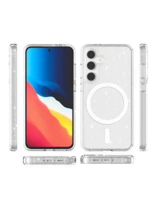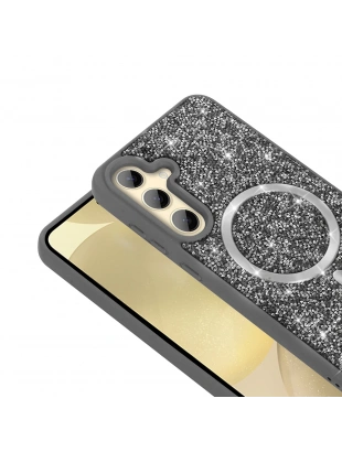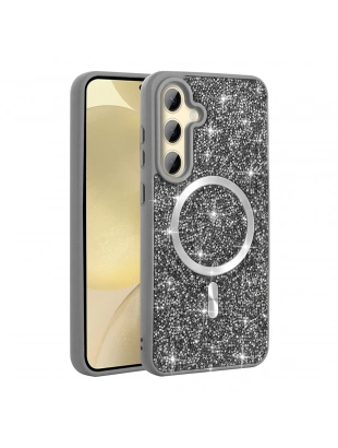 Galaxy S24 FE Kılıf M-safe Şarj Özellikli Parlayan Simli Zore Okso Kapak