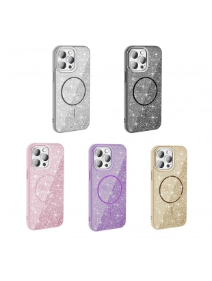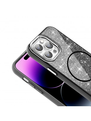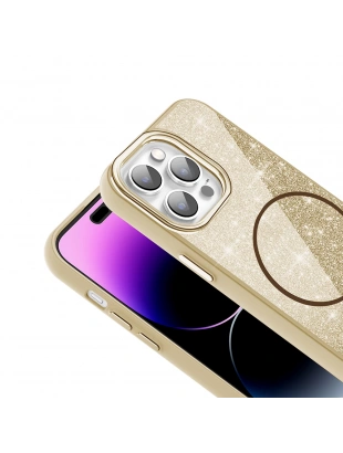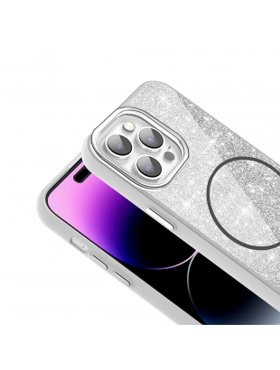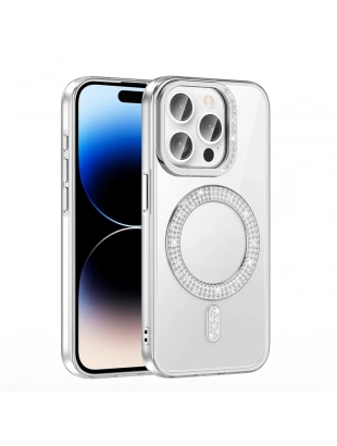 Apple iPhone 14 Pro Max Kılıf M-safe Şarj Özellikli Parlayan Simli Zore Okso Kapak