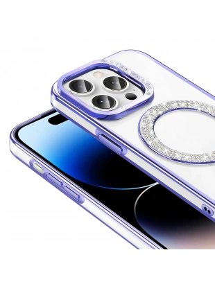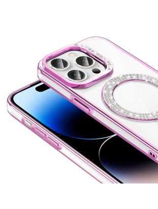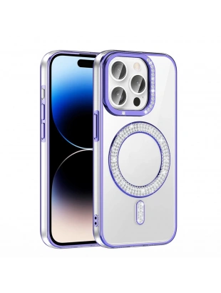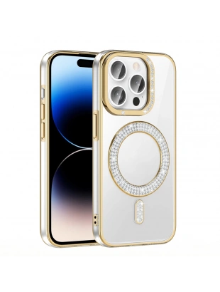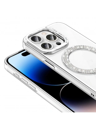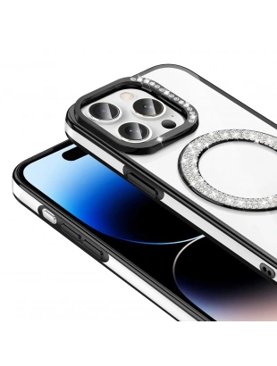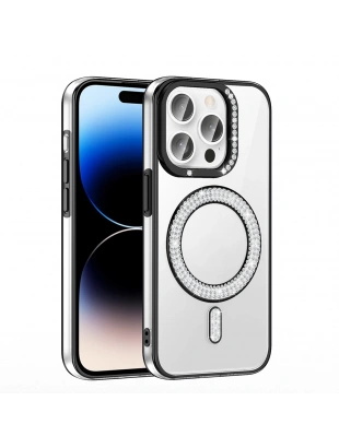 Apple iPhone 14 Pro Max Kılıf Pırlanta Taş Tasarımlı M-safe Şarj Özellikli Zore Karetta Silikon Kapak