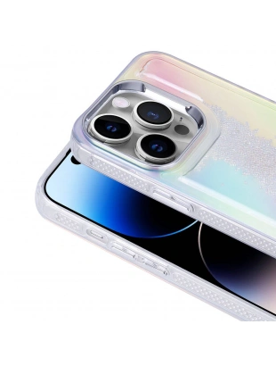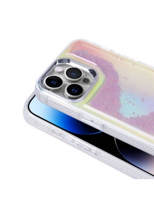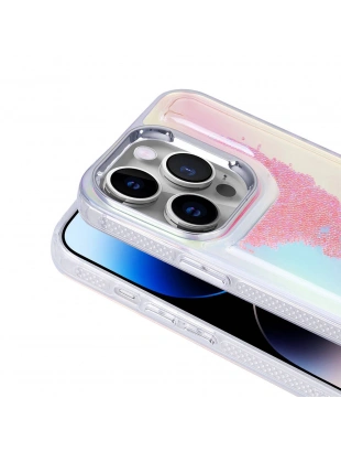 Apple iPhone 14 Pro Max Kılıf Sıvılı Simli Baskılı Şeffaf Arka Yüzey Zore Mossa Silikon Kapak