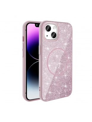 Apple iPhone 14 Kılıf M-safe Şarj Özellikli Parlayan Simli Zore Okso Kapak