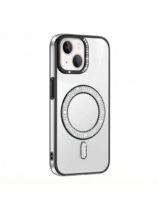 Apple iPhone 14 Kılıf Taşlı Tasarım M-safe Şarj Özellikli Zore Koment Silikon Kapak