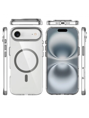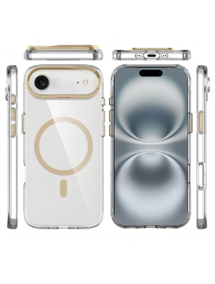 Apple iPhone 17 Air Kılıf IC Çipli M-Safe Şarj Özellikli Şeffaf Kamera Çerçeveli Zore Toledo Kapak