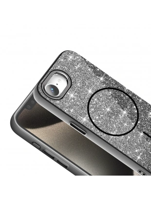 Apple iPhone 17E Kılıf M-safe Şarj Özellikli Parlayan Simli Zore Okso Kapak