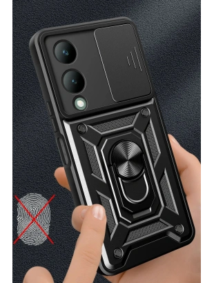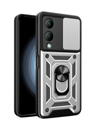 Vivo Y17S Kılıf Pars Lens Yüzüklü Silikon - Gümüş NRMSA
