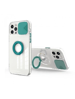 Ally iPhone 12 Pro Max Kılıf Sürgülü Kamera Lens Korumalı Yüzük Standlı Silikon Kılıf