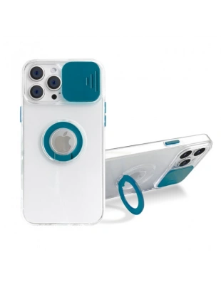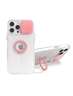 Ally iPhone 13 Pro 6.1 inç Kılıf Sürgülü Kamera Lens Korumalı Yüzük Standlı Silikon Kılıf