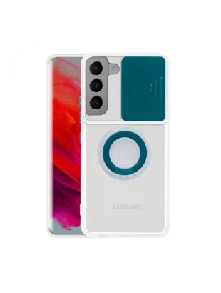 SM Galaxy S21 Plus - S30 Plus Kılıf Sürgülü Kamera Lens Korumalı Yüzük Standlı Silikon Kılıf