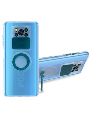 Ally Xiaomi POCO X3 NFC Kılıf Sürgülü Kamera Lens Korumalı Yüzük Standlı Silikon Kılıf