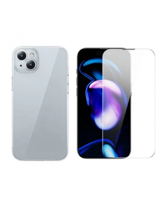 Baseus iPhone 15 Plus Schott Serisi Şeffaf Silikon Kılıf + Tempered Ekran Koruyucu Set