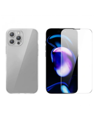 Baseus iPhone 15 Pro Max Schott Serisi Şeffaf Silikon Kılıf + Tempered Ekran Koruyucu Set