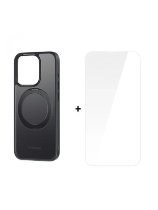 Baseus iPhone 15 Pro Max SkyRing Serisi Standlı Magsafe Manyetik Kılıf + Tempered Ekran Koruyucu Set