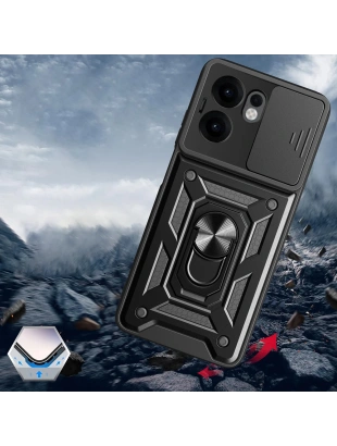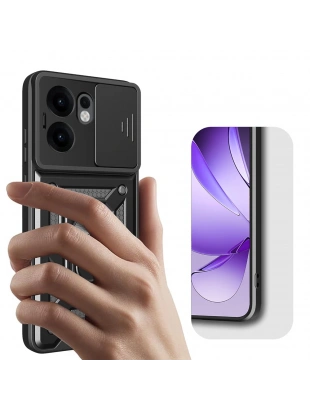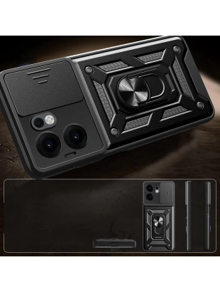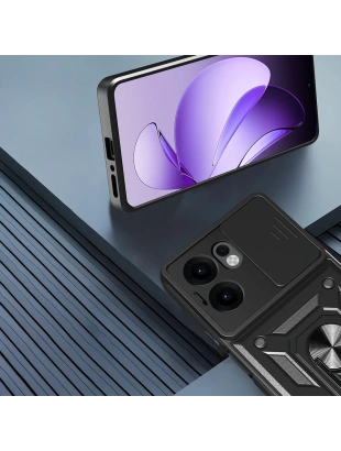 Oppo Reno 13F 5G Kılıf Magnetik Standlı Kamera Korumalı Zore Sürgülü Vega Kapak