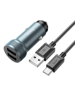 HOCO Z49 Çift USB Girişli Araç Şarj Başlık + USB To Type-C Kablo