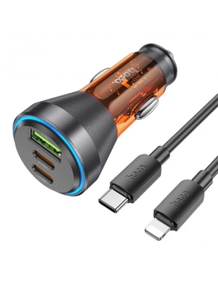 HOCO NZ12D Lucky PD60W 2 Type-C + USB Girişli Araç Çakmaklık Hızlı Şarj Aleti + Type-C to iPhone Lig