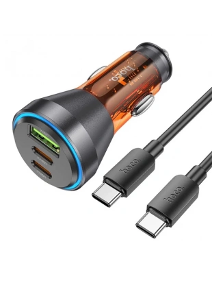 HOCO NZ12D Lucky PD60W 2 Type-C + USB Girişli Araç Çakmaklık Hızlı Şarj Aleti + Type-C to Type-C Kab