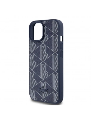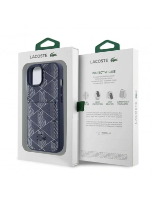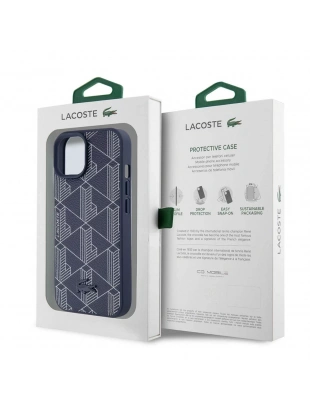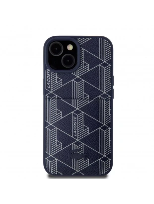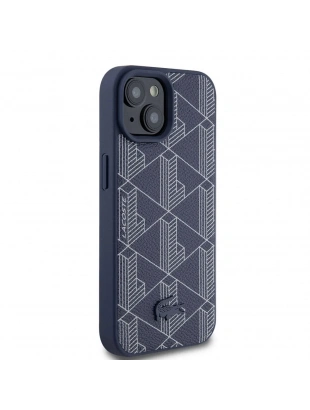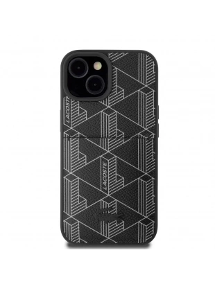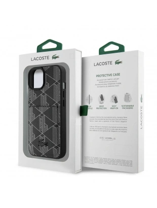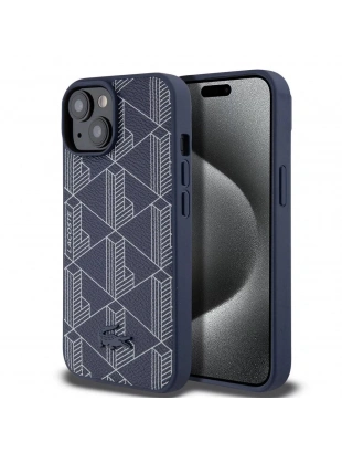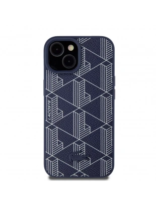 Apple iPhone 15 Kılıf Lacoste Orjinal Lisanslı M-safe Şarj Özellikli PU Deri Görünümlü Karışık Monogram Desenli Kapak
