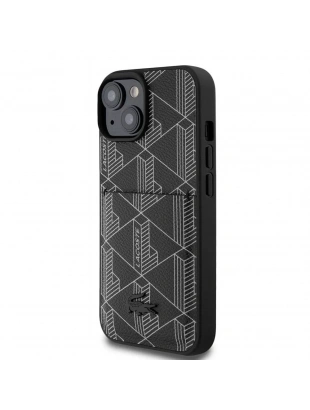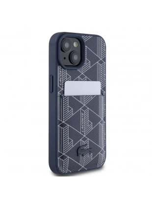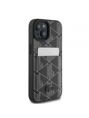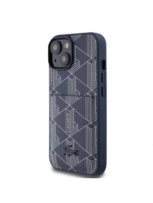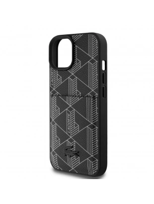 Apple iPhone 15 Kılıf Lacoste Orjinal Lisanslı M-safe Şarj Özellikli PU Deri Görünümlü Kartlıklı Karışık Monogram Desenli Kapak