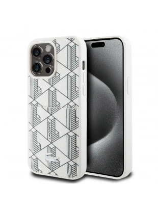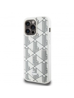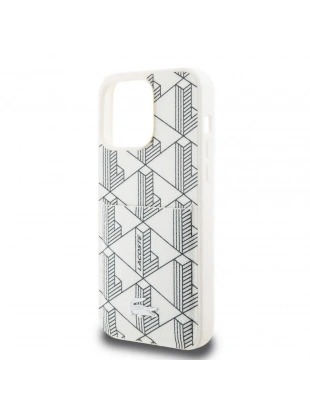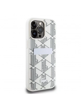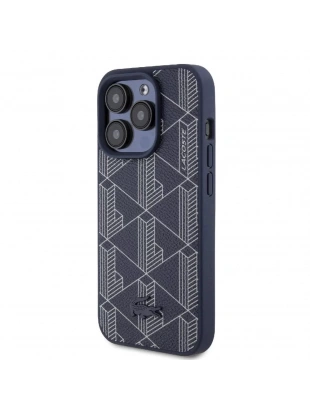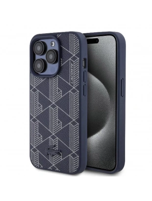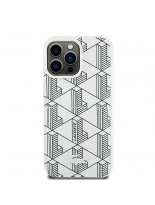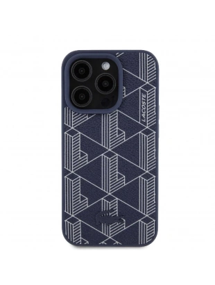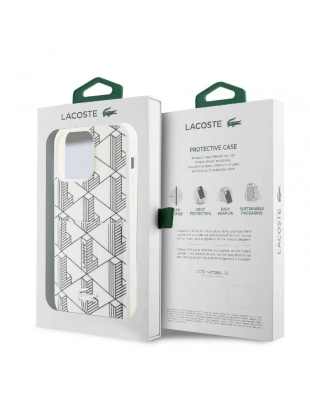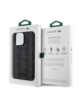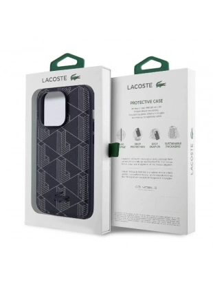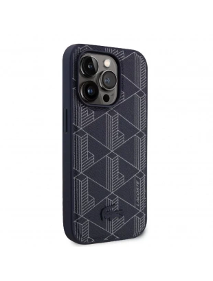 Apple iPhone 15 Pro Kılıf Lacoste Orjinal Lisanslı M-safe Şarj Özellikli PU Deri Görünümlü Karışık Monogram Desenli Kapak