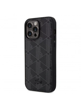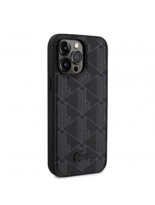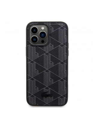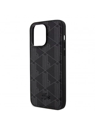 Apple iPhone 15 Pro Max Kılıf Lacoste Orjinal Lisanslı M-safe Şarj Özellikli PU Deri Görünümlü Karışık Monogram Desenli Kapak