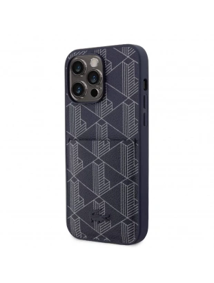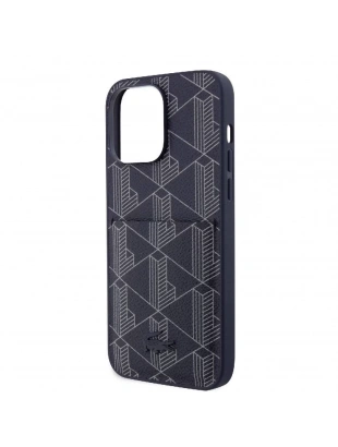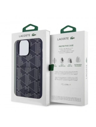 Apple iPhone 15 Pro Kılıf Lacoste Orjinal Lisanslı M-safe Şarj Özellikli PU Deri Görünümlü Kartlıklı Karışık Monogram Desenli Kapak
