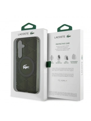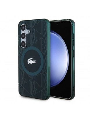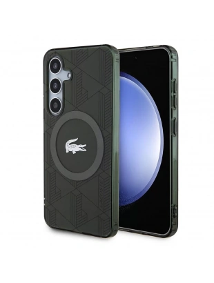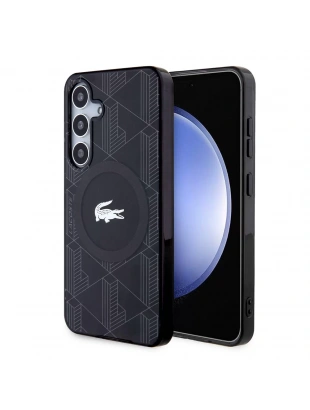 Galaxy S24 Kılıf Lacoste Orjinal Lisanslı M-safe Şarj Özellikli Çift Katmanlı Timsah Logolu Blend Monogram Kapak