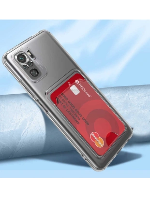 Xiaomi Poco M5S Kılıf Kartlıklı Şeffaf Zore Setra Clear Silikon Kapak