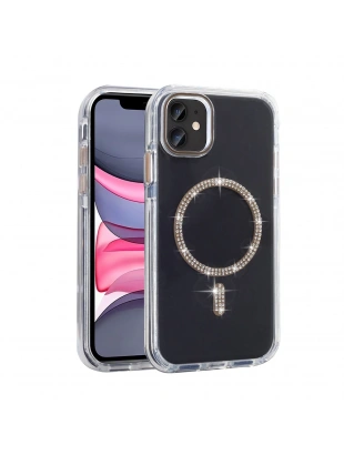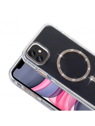 Apple iPhone 11 Kılıf Taşlı Tasarım M-safe Şarj Özellikli Zore Koment Silikon Kapak