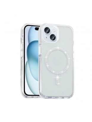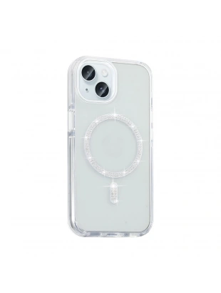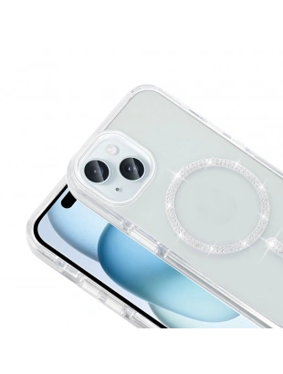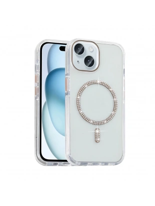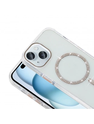 Apple iPhone 15 Plus Kılıf Taşlı Tasarım M-safe Şarj Özellikli Zore Koment Silikon Kapak