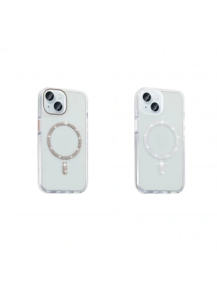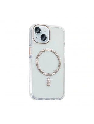 Apple iPhone 15 Kılıf Taşlı Tasarım M-safe Şarj Özellikli Zore Koment Silikon Kapak