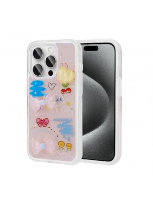 Apple iPhone 15 Pro Max Kılıf Kabartma Figürlü Parlak Zore Minimini Silikon Kapak