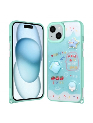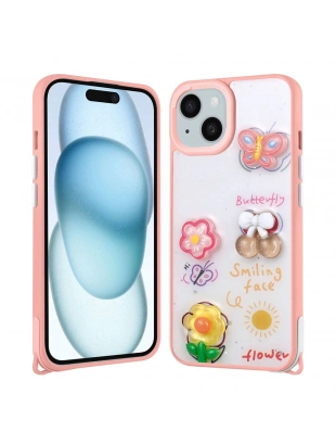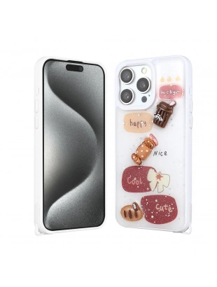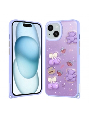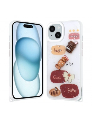 Apple iPhone 15 Kılıf Parlayan Simli Kabartma Figürlü Zore Cevze Kapak