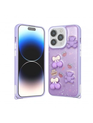 Apple iPhone 14 Pro Max Kılıf Parlayan Simli Kabartma Figürlü Zore Cevze Kapak