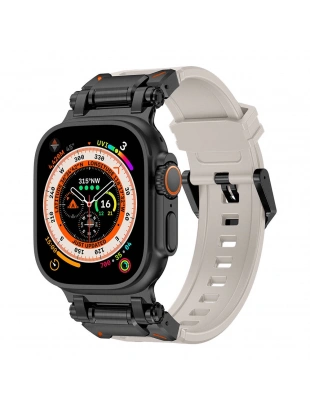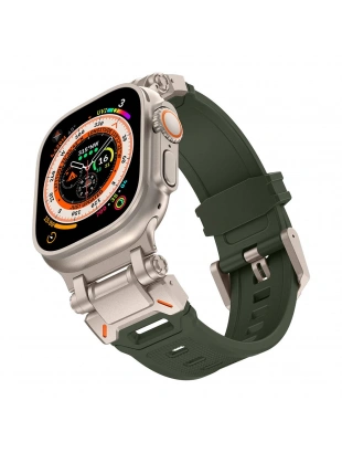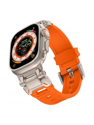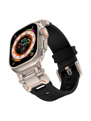 Apple Watch Ultra 49mm Zore KRD-101 Titanyum Metal Başlıklı Silikon Kordon