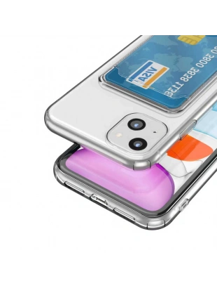 Apple iPhone 14 Kılıf Kartlıklı Şeffaf Zore Setra Clear Silikon Kapak