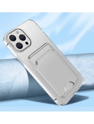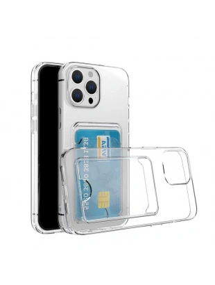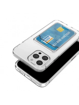 Apple iPhone 14 Pro Max Kılıf Kartlıklı Şeffaf Zore Setra Clear Silikon Kapak